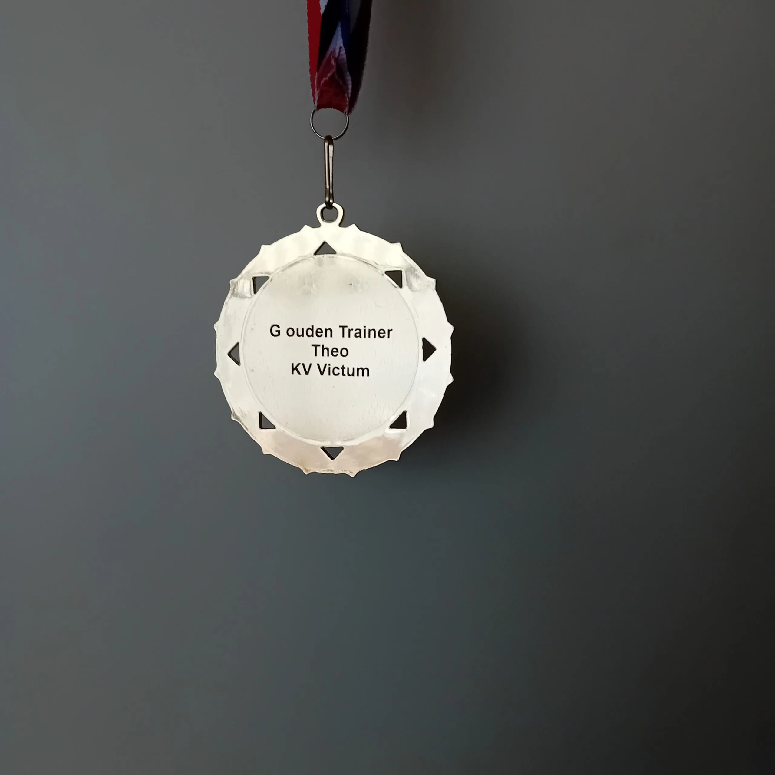 Maar goed, op 11 februari, was er tijd om na de training afscheid te nemen. Er waren twee mooie toespraken, 1 van Bente en de andere van de vader van Stan. Daarna kreeg ik als afscheid de hierboven afgebeelde medaille, en een paar cadeaus. Daarna kwam elke speler een hand geven, met daarbij een mooi afscheidspraatje, en daar werd ik toch wel een beetje emotioneel van. Na afloop nog even zitten napraten. Daarna bracht Bente de cadeaus, naar mijn huis, en ging moe, maar met een tevreden gevoel op de bank te zitten, en ging ik in mijn gedachten terug, naar hoe het allemaal begon. Ik wil dan ook alle trainers, hulptrainers, maar ook de ouders en de familieleden die hielpen bedanken voor hun steun, en het meedoen. Ik vind dan ook terecht, dat wij bij Victum terecht trots mogen wezen op het G Team, en zie hun dan ook als een deel van onze grote familie, bij Victum. Het is niet zo, dat ik dan helemaal niets meet doe, want als de nood aan de man is, zal ik wel gaan coachen, daarvoor zit mijn hart te diep verankerd, bij het G Team. Tot slot, jullie zitten voor altijd in mijn hart. En beste lezers, als zij spelen, ga hun dan aanmoedigen, want je ziet een enthousiaste groep spelers, die veel plezier en strijdlust hebben.