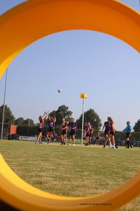 Het zonnetje bleef lekker schijnen, maar met de wind was het verraderlijk weer. Wij begonnen met Bianca, Hananja, Maarten, Irwan (aanval), Anouk, Rianne, Oscar en