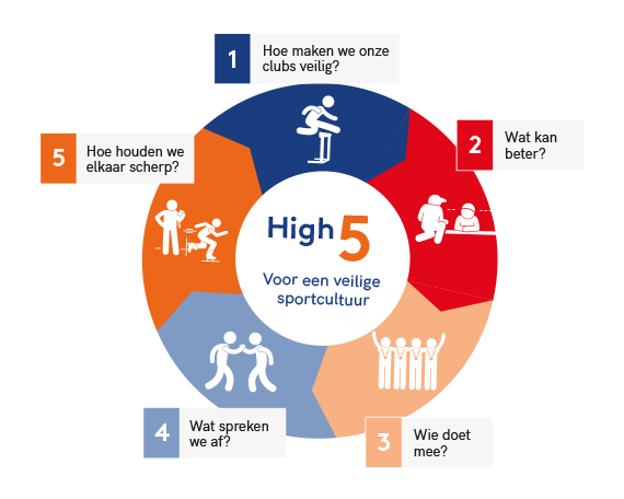 Het onderwerp sociale veiligheid bij sportclubs wordt geregeld besproken in de media en is op een bijeenkomst van Sportpunt Houten in april j.l. besproken met alle aanwezige sportverenigingen. Hierbij was ook een expert Sociale Veiligheid Sport (Team Integriteit NOC*NSF) aanwezig. Er is veel besproken die avond. Een van de aanwezige verenigingen had een enquete, met stellingen afkomstig uit het High 5 principe, onder haar leden gehouden, om inzicht te krijgen hoe de leden de sociale veiligheid ervaren en welke aandachtspunten en verbeterpunten er zijn.
